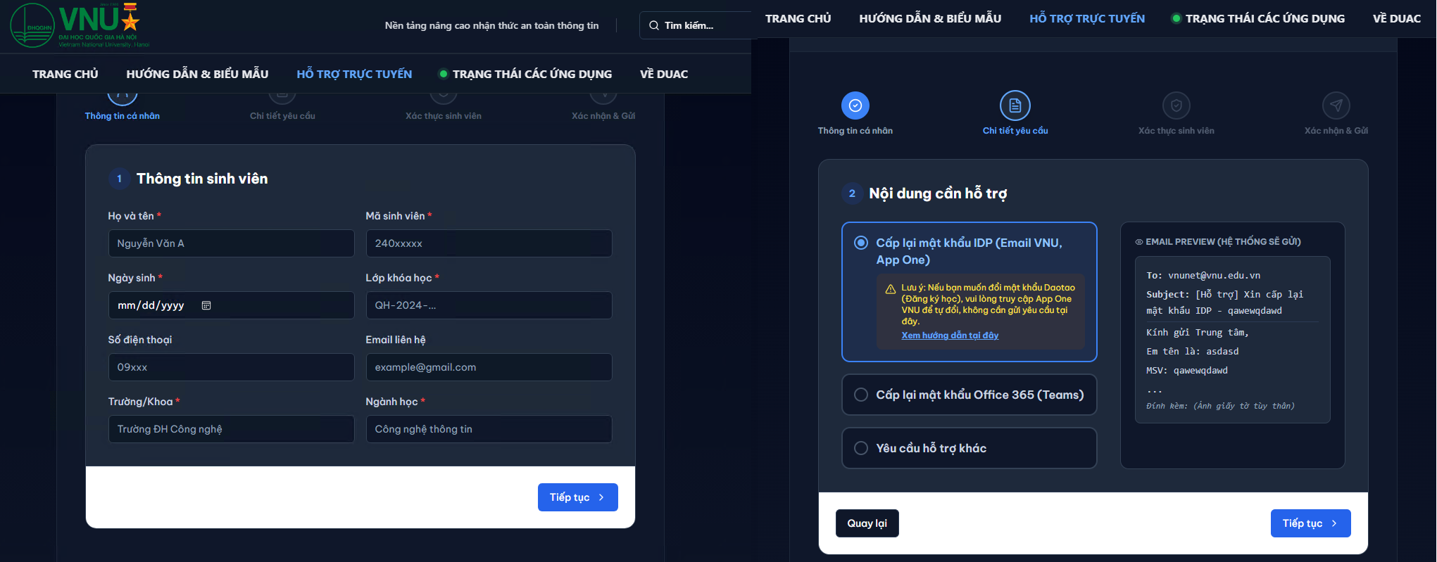 I. Yêu cầu cấp lại mật khẩu qua bộ phận hỗ trợ VNU